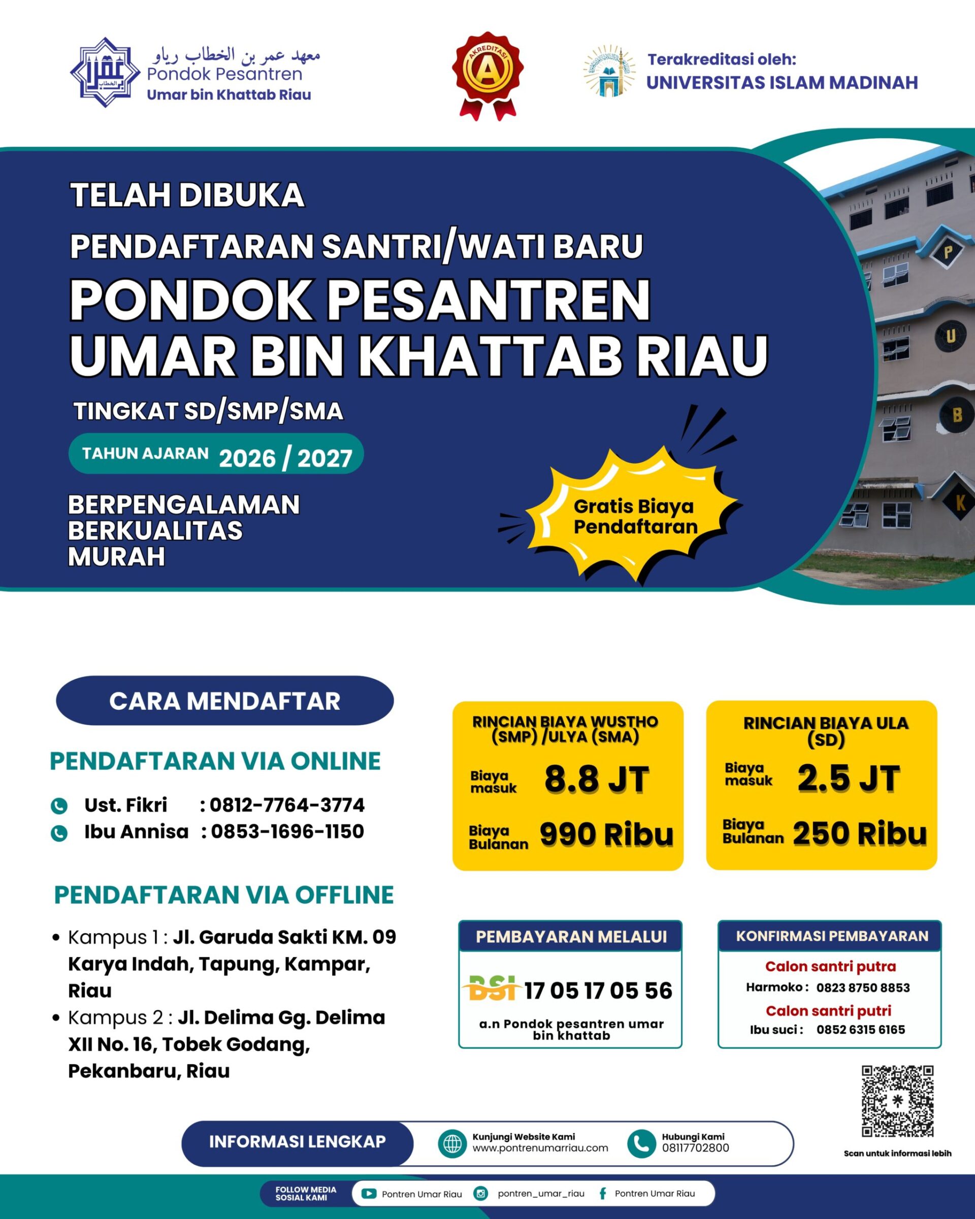 Pondok Pesantren Umar bin Khattab pertama kali didirikan pada tahun 1999 di Kota Pekanbaru, tepatnya di:
